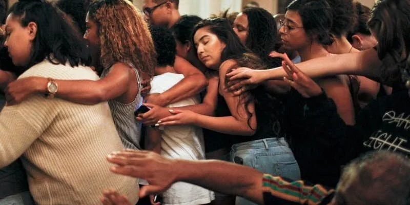 *head image from The McCarty Memorial Christian Church congregation comes together to embrace a man who recently lost his brother at the hands of police. (Harrison Hill / Los Angeles Times )